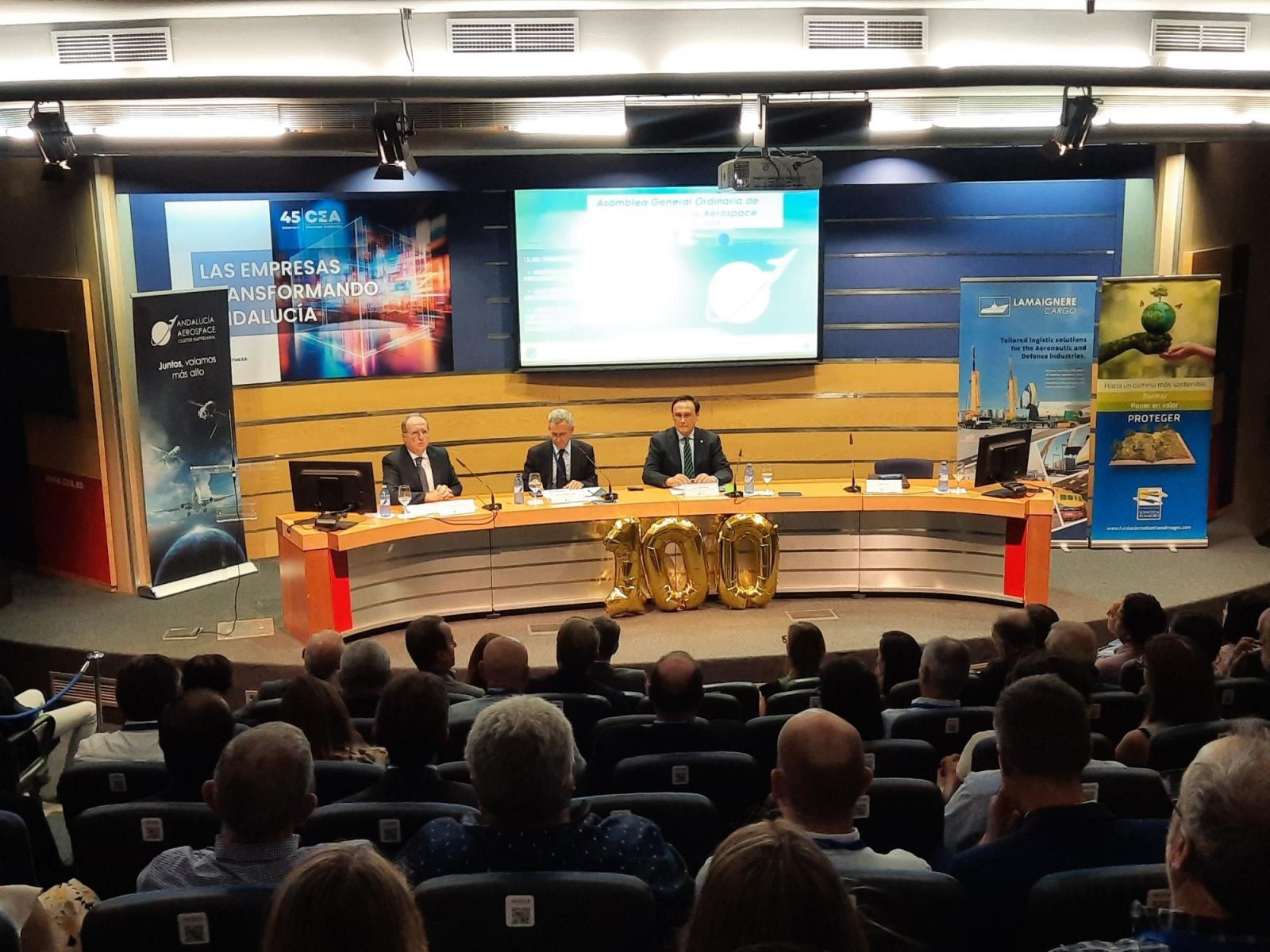 Andalucía Aerospace recently held its General Assembly under the slogan ‘We have reached 100 members’. The Andalusian aerospace cluster, since it started its activity in 2018, has been growing progressively and steadily every year in number of members, reaching already one hundred. That is why the Assembly served to thank the cluster’s associates for their commitment to the growth of the association, holding an event in which participated some of the companies that have been part of Andalucía Aerospace since its beginnings, such as Grupo Sevilla Control, and others that have just joined, such as Safran Electronics & Defence. A very special event for the cluster, sponsored by Lamaignere and the Sebastián Almagro Foundation.