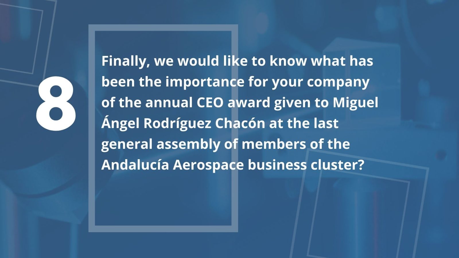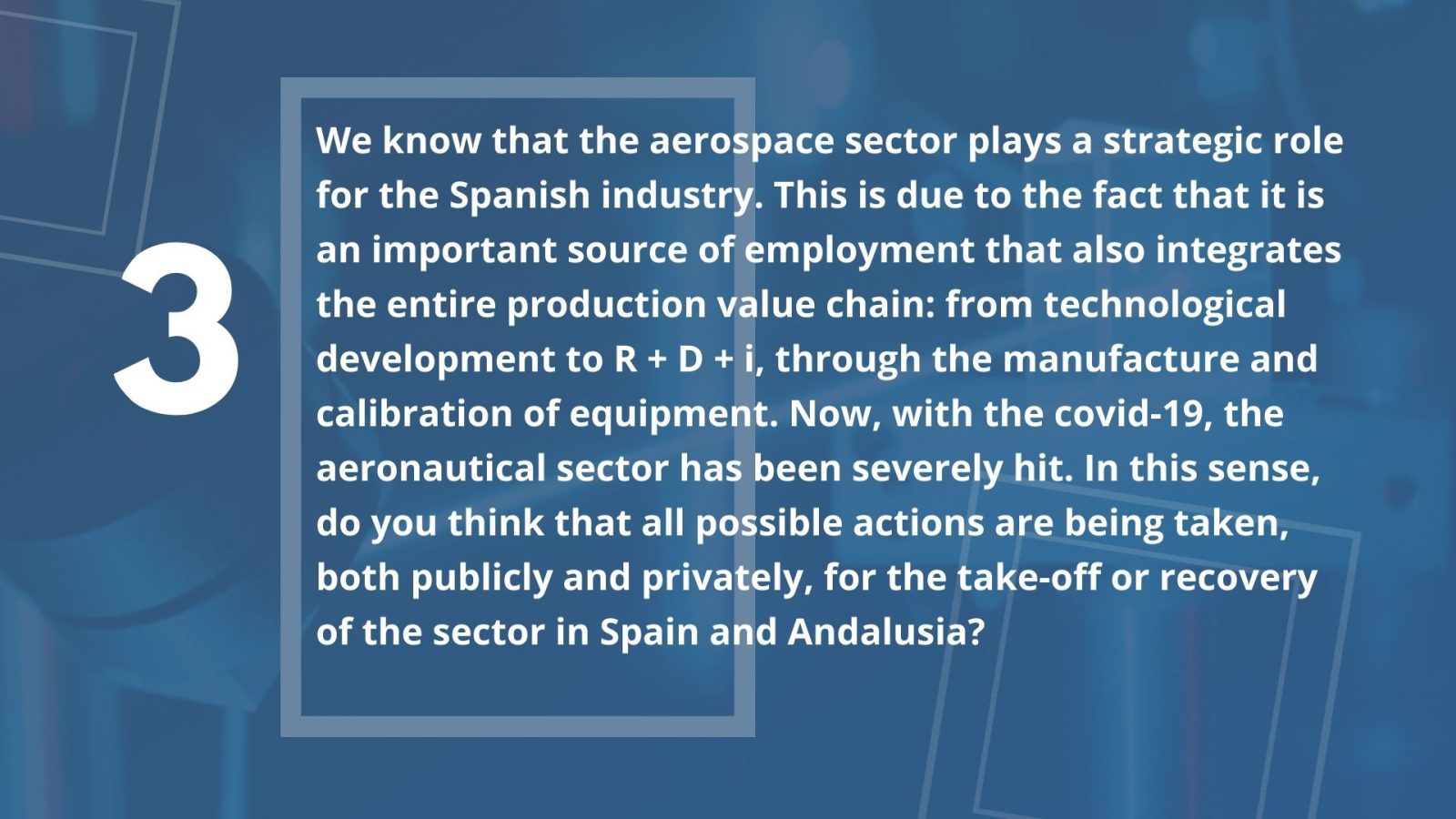 On the other hand, we have the particularity that the Andalusian aeronautical sector has a strategic plan, defined before the pandemic, and in my opinion even more useful now, as it details lines of action and specific actions for the development of our industry. This plan needs funds to be able to implement actions, and it would be very important to be able to count on them as soon as possible.