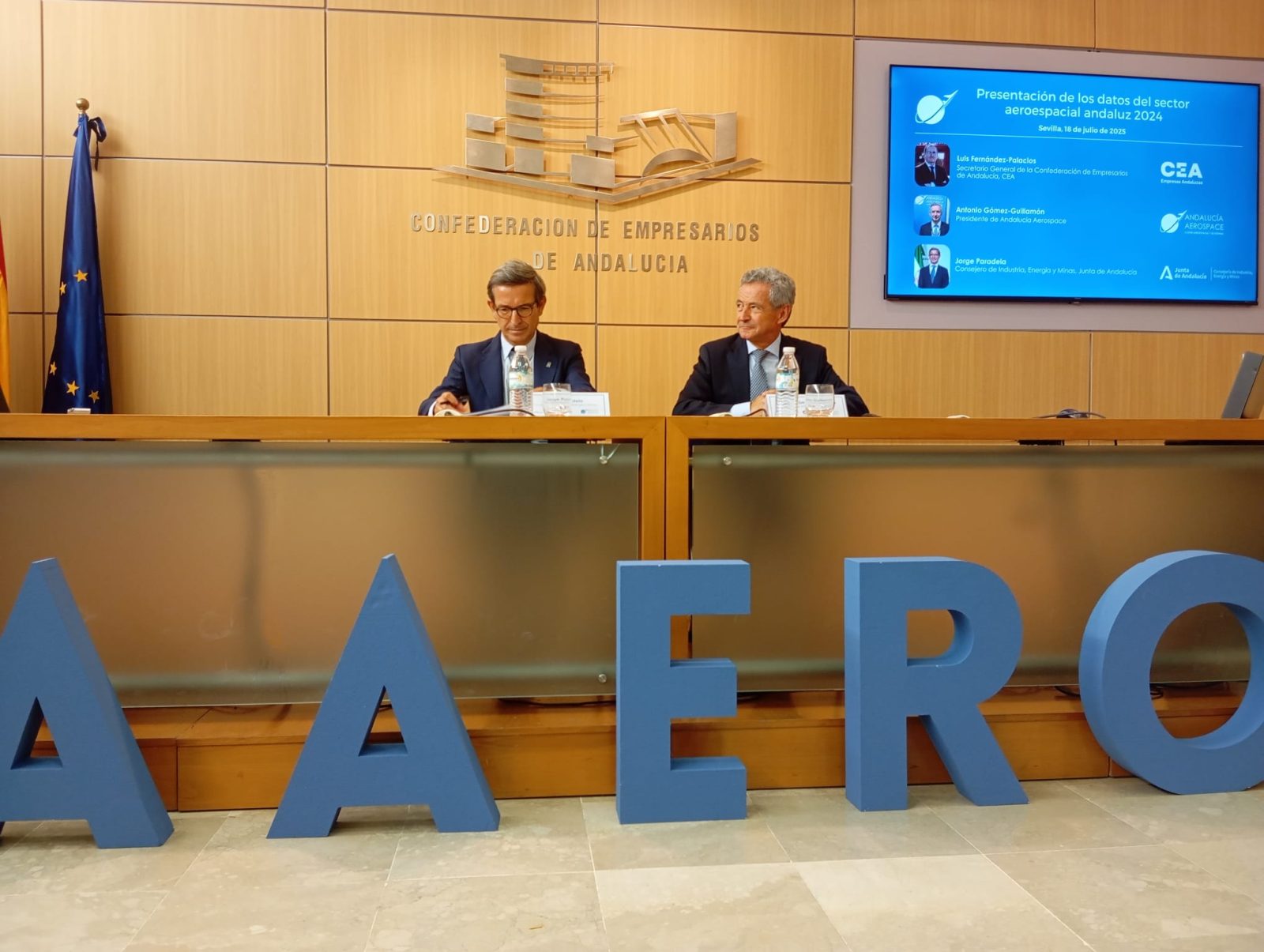 The Confederation of Entrepreneurs of Andalusia (CEA) headquarters hosted the presentation of the 2024 data for the aerospace sector in Andalusia. The Regional Minister for Industry, Energy and Mines of the Regional Government of Andalusia, Jorge Paradela, and the president of the Andalucía Aerospace cluster, Antonio Gómez-Guillamón, unveiled this statistical report, made by the regional aerospace and defense cluster with the support of the Ministry.