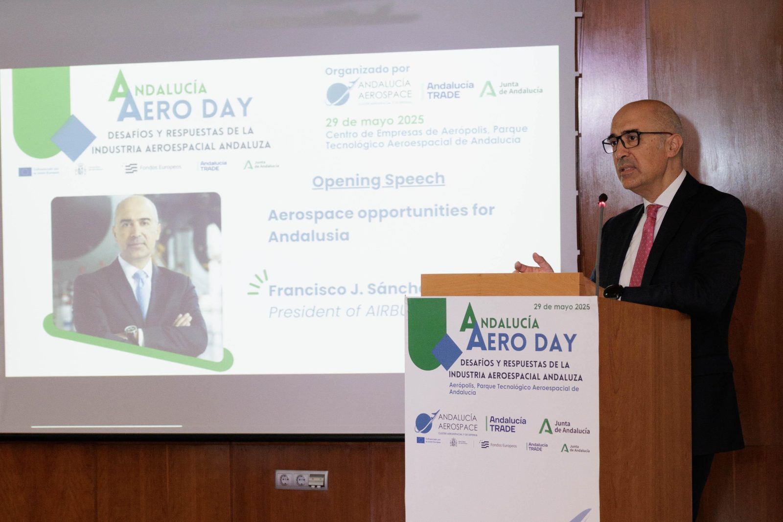 La jornada ha sido inaugurada por la consejera de Economía, Hacienda y Fondos Europeos de la Junta de Andalucía, Carolina España, y por el presidente de Andalucía Aerospace, Antonio Gómez-Guillamón. A continuación, se ha celebrado la conferencia inaugural a cargo del presidente de Airbus España, Francisco J. Sánchez, quien ha subrayado el papel estratégico que juega Andalucía en los principales programas de Airbus a nivel europeo, y las oportunidades para la industria andaluza que se abren en el ámbito de la defensa.