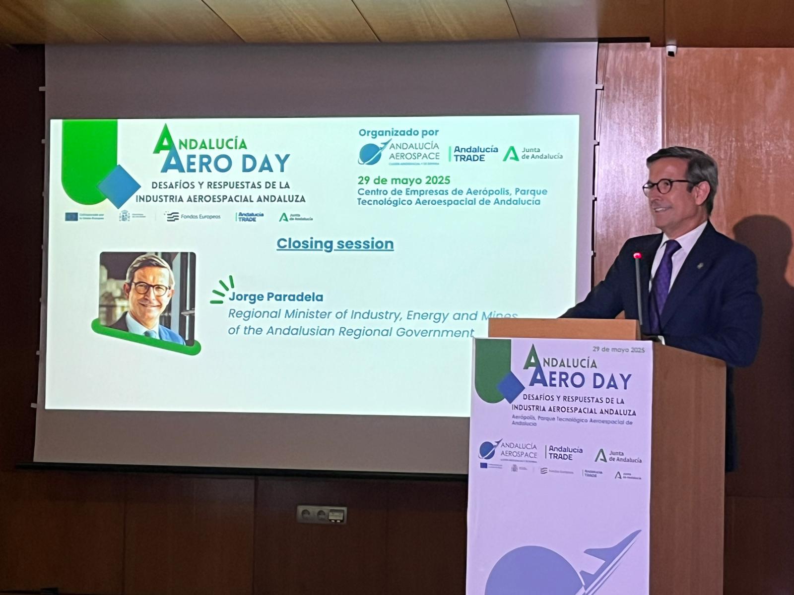 El evento ha finalizado con la exposición de las conclusiones por parte del director general de Andalucía TRADE, Antonio Castro, y el presidente de Andalucía Aerospace, Antonio Gómez-Guillamón, y la clausura institucional corrió a cargo del consejero de Industria, Energía y Minas de la Junta de Andalucía, Jorge Paradela.